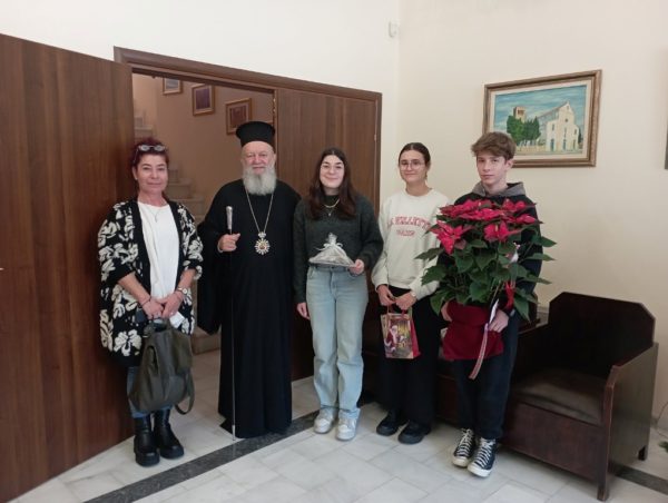 Αμέσως μετά, ο Σεβασμιώτατος δέχθηκε αντιπροσωπία μαθητών και εκπαιδευτικών του 3ου Γυμνασίου Χαλκίδος, οι οποίοι του προσέφεραν δώρα και τις ευχές ολόκληρης της σχολικής τους κοινότητας για τα Χριστούγεννα.