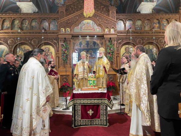 Μετά την πανηγυρική Θεία Λειτουργία, τελέσθηκε η επίσημη Δοξολογία της αρχής του έτους και η ευλογία της αγιοβασιλόπιττας, παρουσία των αιρετών και στρατιωτικών αρχόντων του τόπου.