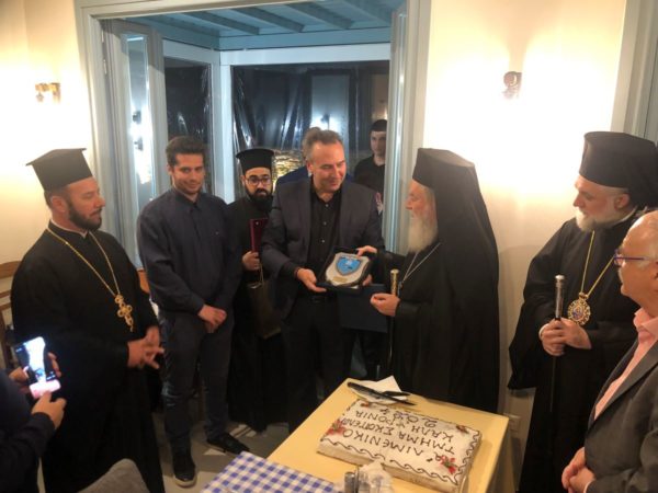 Μετά τον Εσπερινό, ο Σεβασμιώτατος ευλόγησε και έκοψε την αγιοβασιλόπιττα του Α΄ λιμενικού τμήματος Σκοπέλου.