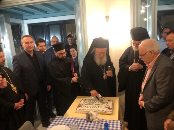 Μετά τον Εσπερινό, ο Σεβασμιώτατος ευλόγησε και έκοψε την αγιοβασιλόπιττα του Α΄ λιμενικού τμήματος Σκοπέλου.