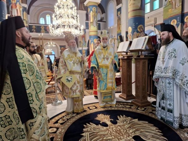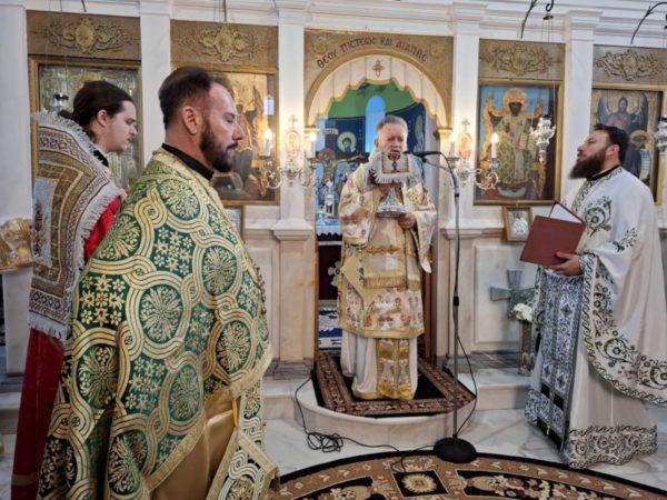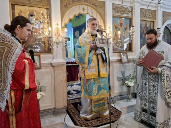 Τον θείο λόγο κήρυξε ο Θεοφιλέστατος Επίσκοπός Σκοπέλου κ. Νικόδημος, ενώ προ της απολύσεως, ο εφημέριος αρχιμ. Πορφύριος Γερμανός, εκ μέρους της Ενορίας, προσέφερε από ένα αρχιερατικό εγκόλπιο στους αγίου Αρχιερείς και τα παιδιά των Κατηχητικών βαθμίδων της Ενορίας, μαζί με τις κατηχήτριες τους, προσέφεραν άνθη και από μια χειροποίητη αναμνηστική κάρτα με ευχές προς τους Αρχιερείς.
