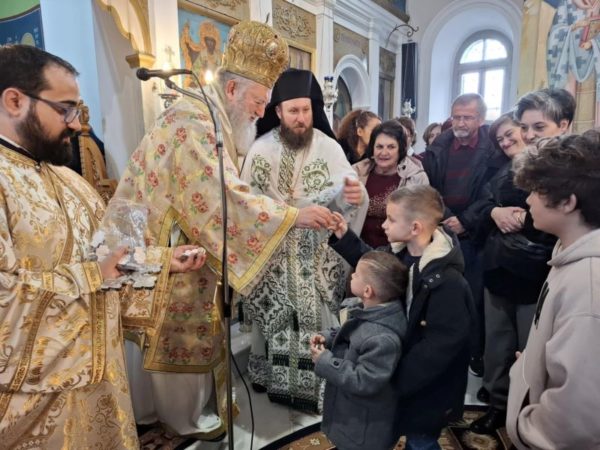 Την Κυριακή του Ασώτου, 16 Φεβρουαρίου 2025, ο Σεβασμιώτατος Μητροπολίτης Χαλκίδος κ. Χρυσόστομος, συνοδευόμενος από τον Θεοφιλέστατο Επίσκοπο Σκοπέλου κ. Νικόδημο, επισκέφθηκε την Ενορία Αγίου Νικολάου Μπούρτζι Χαλκίδος, όπου χοροστάτησε στον Όρθρο, προέστη στο αρχιερατικό Συλλείτουργο και χειροθέτησε Αναγνώστη τον Λαμπαδάριο της Ενορίας κ. Χρήστο Παπασταμούλο, αστυνομικό στο επάγγελμα, έγγαμο, πατέρα δύο τέκνων και μαθητή της Σχολής Βυζαντινής Μουσικής της Ιεράς Μητροπόλεως Χαλκίδος.
