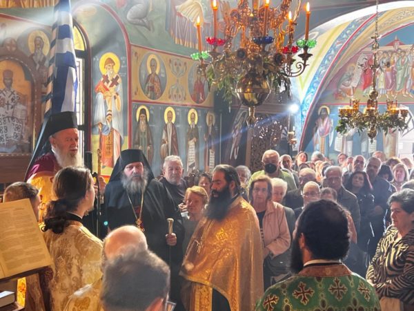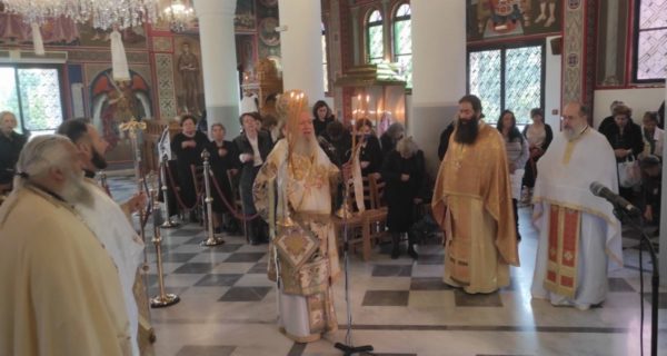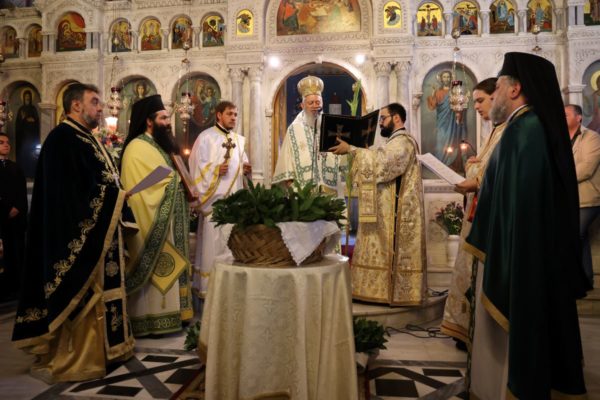 Αναλυτικά, το Σάββατο του Λαζάρου, ο Σεβασμιώτατος Μητροπολίτης κ. Χρυσόστομος χοροστάτησε στον Όρθρο, προέστη στην Θεία Λειτουργία και κήρυξε τον θείο λόγο στον πανηγυρίζοντα Ιερό Ναό της εγέρσεως του Λαζάρου στο νέο Κοιμητήριο Χαλκίδος, με συλλειτουργούς τους ιεροκήρυκες Αρχιμανδρίτες Τιμόθεο Μπαϊμπάκη και Νεκτάριο Ευγενικό, τους εφημερίους της Ενορίας Δοκού Πρωτοπρεσβύτερο Γεώργιο Μωραΐτη και Πρεσβύτερο Ευάγγελο Πράγια και τον Αρχιδιάκονο Σταύρο Καλαφάτη.
