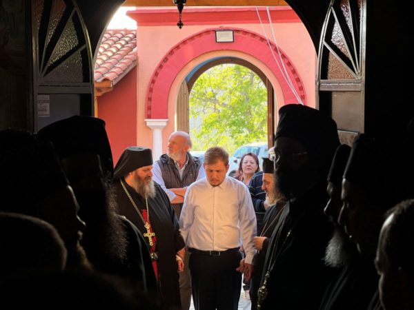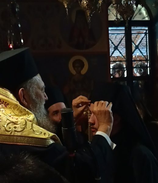 Το απόγευμα του Σαββάτου, ο Σεβασμιώτατος μετέβη στην Ιερά Μονή Κοιμήσεως της Θεοτόκου Μακρυμάλλη Ψαχνών, όπου χοροστάτησε στον Εσπερινό της Εορτής των Βαΐων, κατά τον οποίο τέλεσε και την μοναχική κουρά του δοκίμου μοναχού Δημητρίου Παπαϊωαννου καταγομένου από τα Πολιτικά Μεσσαπίων.