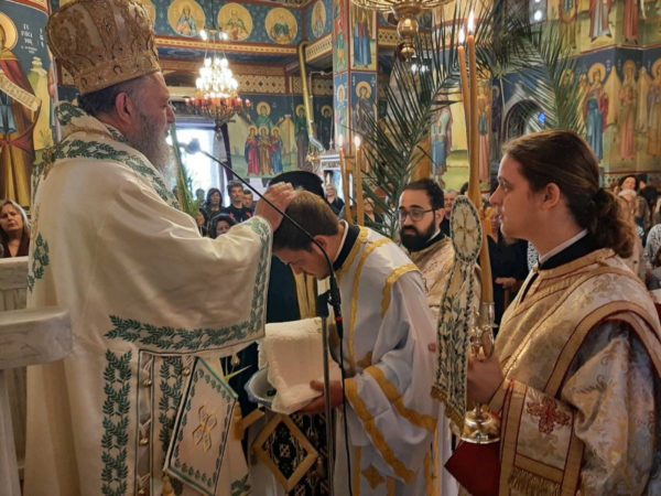 Λίγο πριν την χειροτονία, ο Σεβασμιώτατος, απευθυνόμενος στον χειροτονούμενο αλλά και στους εκκλησιασθέντες πιστούς, οι οποίοι από νωρίς κατέκλυσαν τον Ιερό Ναό επεσήμανε ότι ο λειτουργός του Θεού κομίζει και ομολογεί στον κόσμο τον Χριστό πράο και ταπεινό, όπως Εκείνος εισήλθε στα Ιεροσόλυμα, έστω κι αν ο κόσμος επιμένει να Τον σταυρώνει ώστε να τον αφανίσει από την ζωή του.