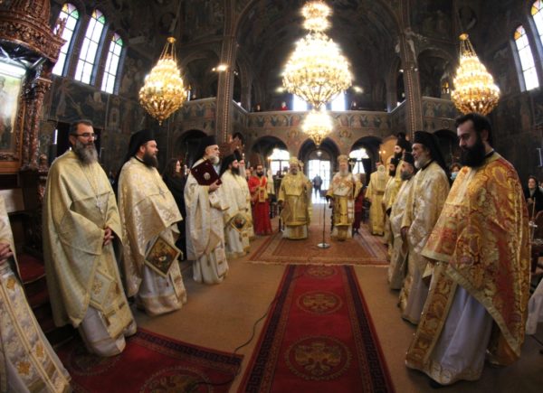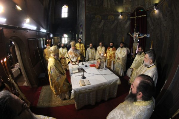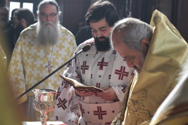 Ο Θεοφίλεστατος χοροστάτησε στον Όρθρο και προέστη στη Θεία Λειτουργία, με συλλειτουργούς τον Σεβασμιώτατο κ. Χρυσόστομο, τους Πρωτοσυγκέλλους των Ι. Μητροπόλεων Κίτρους και Κατερίνης Αρχιμ. Βαρνάβα Λεοντιάδη, Καρυστίας και Σκύρου Αρχιμ. Νικόδημο Πόγκα και Χαλκίδος Αρχιμ. Νικόδημο Ευσταθίου, τον Β΄ Γραμματέα της Ι. Συνόδου και Ιεροκήρυκα της Ι. Μητροπόλεως Χαλκίδος Αρχιμ. Ιωάννη Καραμούζη και πολλούς Κληρικούς, οι οποίοι προσήλθαν συγχαίροντες στην εις Διάκονον χειροτονία του κ. Νικολάου Καλαφάτη, πτυχιούχου Θεολογίας, μεταπτυχιακού φοιτητού στο Π.Μ.Σ. «Πηγές, Λατρεία και Διαπολιτισμικός βίος του Χριστιανισμού» στο Ε.Κ.Π.Α., εγγάμου και πνευματικού υιού του Προϊσταμένου του Ι. Ν. Αγ. Αγίας Παρασκευής Πολιούχου Χαλκίδος Αρχιμ. Συμεών Ηλιοδρομίτη.