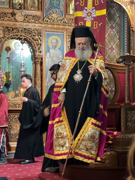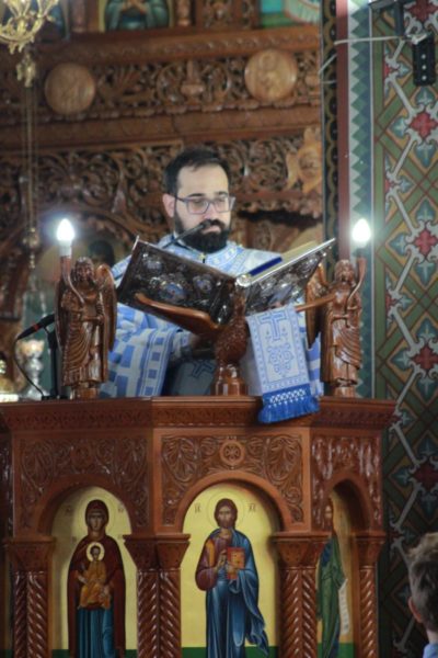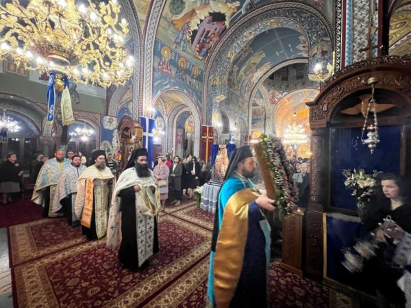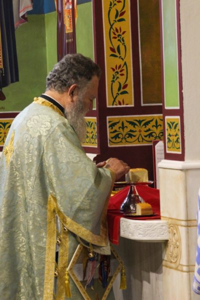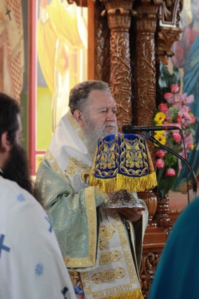 Στην συνέχεια, ο Σεβασμιώτατος χοροστάτησε στην Ακολουθία του μεθεορτίου Εσπερινού, στο τέλος του οποίο, συνεχάρη τον δραστήριο προϊστάμενο της Ενορίας αρχιμ. Θεοφύλακτο Τσαγκάρη, τα μέλη του Εκκλησιαστικού Συμβουλίου, τους ιεροψάλτες κ. Γεώργιο Γερογιάννη και κ. Στυλιανό Καραβά και όλους τους συνεργάτες και εθελοντές της Ενορίας για την διοργάνωση της Πανηγύρεως.
