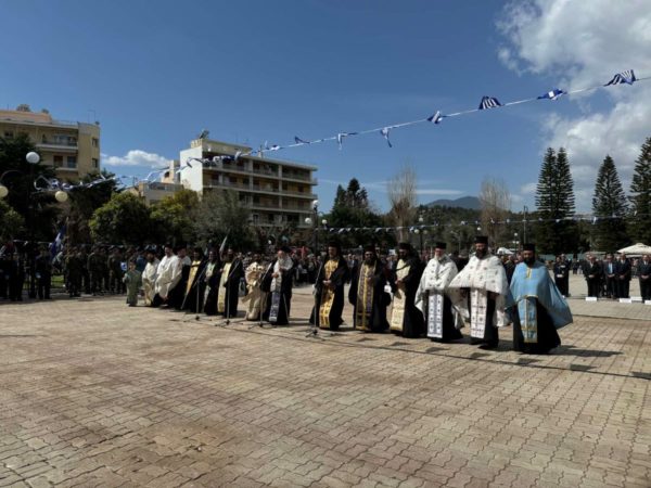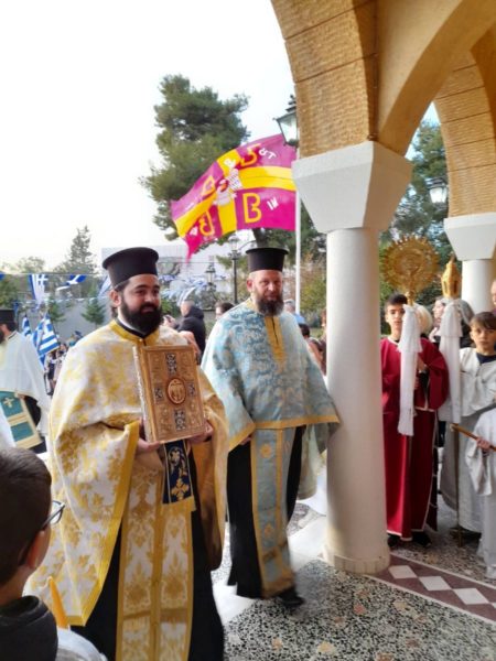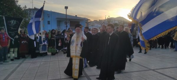 Μετά την Θεία Λειτουργία, ο Σεβασμιώτατος μετέβη στον Ι. Ναό του Αγίου Νικολάου Χαλκίδος, όπου προεξήρχε, ενώπιον των Αρχών του Τόπου και του Λαού, στην Δοξολογία για την Εθνική Εορτή, στην Επιμνημόσυνη Δέηση στο Ηρώον και εν συνεχεία παρακολούθησε την μαθητική και στρατιωτική παρέλαση στην Παραλία Χαλκίδος, κατά την οποία, με μεγάλη συγκίνηση, ο Πανευβοϊκός Σύλλογος Καππαδοκών ο “Άγιος Ιωάννης ο Ρώσος” έδωσε το “παρών” φέροντας επετειακό λάβαρο με το λογότυπο της εκατονταετηρίδας μετά την έλευση του ιερού λειψάνου του Αγίου Ιωάννου του Ρώσου και των Καππαδοκών στην Εύβοια (1924-2024).