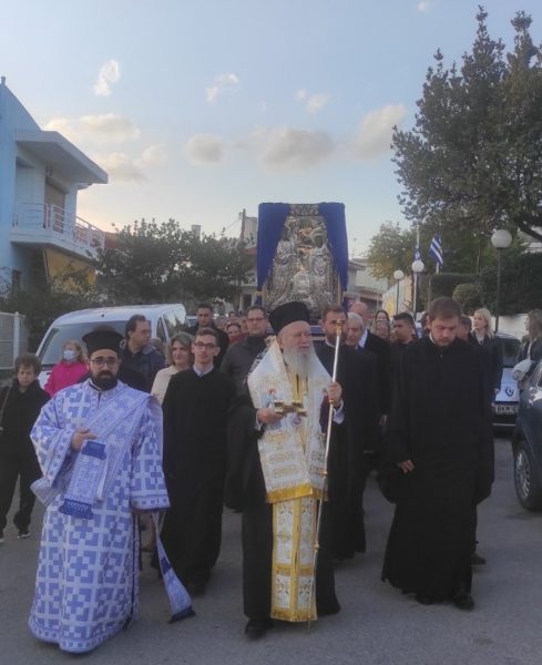 Το απόγευμα της ιδίας ημέρας, ο Σεβασμιώτατος κ. Χρυσόστομος αφήχθη στον Ι. Ν. Ευαγγελιστρίας Κανήθου και προεξήρχε στην Λιτάνευση της Ιεράς Εικόνος της Ευαγγελιστρίας Θεομήτορος, στους δρόμους της συνοικίας Κανήθου, με συλλιτανευτές τους αρχιμ. Χριστόδουλο Μάνια-εφημέριο της Ενορίας αγ. Νεκταρίου Χαλκίδος, Συμεών Ηλιοδρομίτη-προϊστάμενο του Ενοριακού Ι. Ν. αγ. Παρασκευής πολιούχου Χαλκίδος, Δαμασκηνό Παπακωνσταντίνου-εφημέριο του Ι. Ναού Ευβοέων αγίων Χαλκίδος, Ευγένιο Τσάλλα-δευτερεύοντα εφημέριο του Ενοριακού Ι. Ν. αγ. 12 Αποστόλων Ν. Αρτάκης, τον πρωτοπρεσβ. Ευάγγελο Γαλάνη, τον οικον. Αναστάσιο Χρήστου-προϊστάμενο του Ενοριακού Ι. Ν. Τιμίου Προδρόμου Χαλκίδος τους πρεσβ. Πέτρο Βλάχο-εφημέριος της Ενορίας αγ. Τρύφωνος Ν. Λαμψάκου, Χρυσόστομο Τσούβαλη, τον αρχιδιάκ. Σταύρο Καλαφάτη και δεκάδες ευλαβών ενοριτών και προσκυνητών, με προεξάρχοντες τα παιδιά και τους νέους που απάρτιζαν τμήματα σχολικών μονάδων, ομίλους με παραδοσιακές ενδυμασίες, το σύνολο των ιεροπαίδων και τις χορωδίες των ιεροψαλτών.