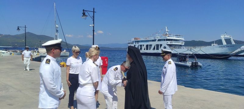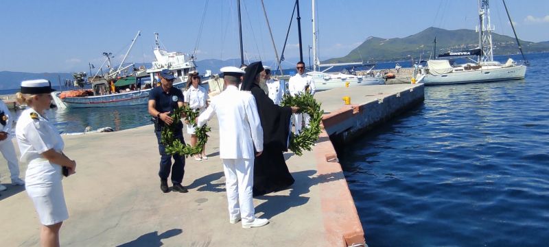 Μετά την απόλυση της Θείας Λειτουργίας, ο Σεβασμιώτατος συμμετείχε στην επιμνημόσυνη δέηση, που διοργάνωσε το Λιμεναρχείο Αιδηψού, ενώπιον του μνημείου του αφανούς ναύτη, στο λιμάνι της Λουτροπόλεως.
