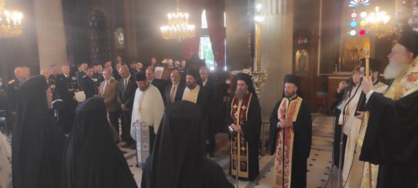 Κατόπιν τέλεσε την δοξολογία υπέρ των Ενόπλων δυνάμεων της Πατρίδος μας πλαισιούμενος από Κληρικούς της Πόλεως Χαλκίδος, παρουσία των Βουλευτών Ευβοίας κ. Σιμου Κεδίκογλου και κ. Κωνσταντίνας Καραμπατσώλη, του Διοικητού της Σχολής Πεζικού Υποστρατήγου Κωνσταντίνου Τακόπουλου, του Διευθυντού της Αστυνομικής Διευθύνσεως Ευβοίας Ταξιάρχου κ. Αθανασίου Γερογιάκομου, του Κεντρικού Λιμενάρχη Χαλκίδος Πλοιάρχου κ. Κωνσταντίνου Φλουρή, του Διοικητού Πυροσβεστικών Υπηρεσιών Ευβοίας Πυράρχου κ. Κωνσταντίνου Ψαρρού, εκπροσώπων της τοπικής αυτοδιοίκησης και άλλων φορέων.