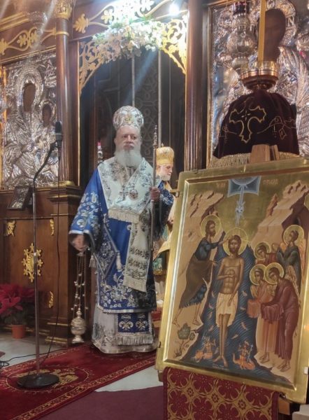 Στην διδακτική του ομιλία, ο Σεβασμιώτατος επεσήμανε ότι μέσα στην περίοδο του Αγίου Δωδεκαημέρου και ιδιαίτερα σήμερα αποκαλύπτεται, ως φως, ο Τριαδικός Θεός και μας προσκαλεί, διά Ιησού Χριστού, να τον γνωρίσουμε και να έχουμε σχέση κοινωνίας μαζί Του, δηλαδή να φωτισθούμε, συντεταγμένοι με τον Χριστό και αποτασσόμενοι τα έργα του διαβόλου. Αν λοιπόν οι άνθρωποι επιλέγουν τα έργα του διαβόλου, αγνοώντας την αποστολή που έλαβαν μετά το Βάπτισμά τους, αν υβρίζουν τον Θεό, αυτοθεώνοντας τον εαυτό και τον εγωισμό τους, τότε μένουν άσχετοι με το αληθινό φως και ευχήθηκε σε όλους να εορτάζουμε και να ευχόμαστε ουσιαστικά, μεταλαμβάνοντας όχι μόνο στο νόημα των εορτών αλλά κυρίως στην παραδείσια σχέση με τον Θεό.