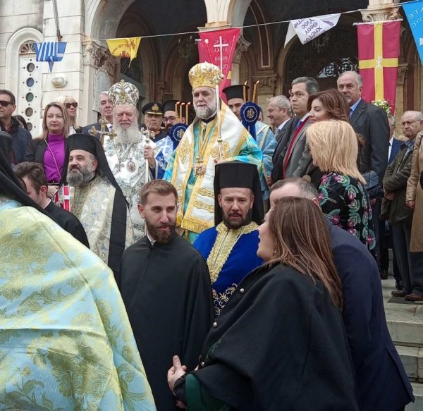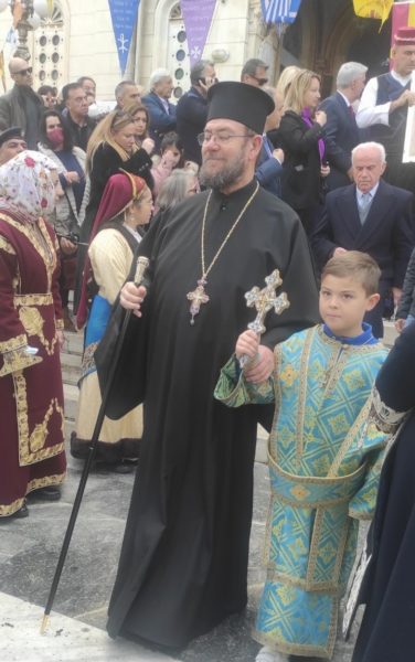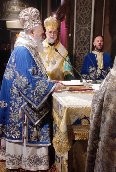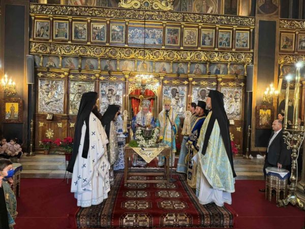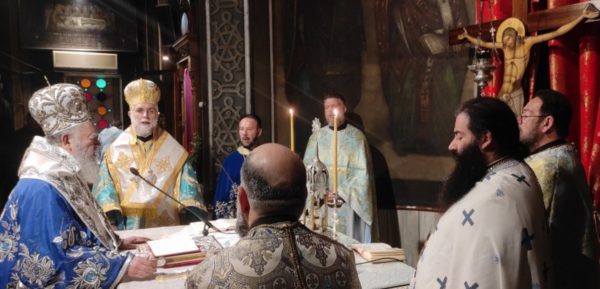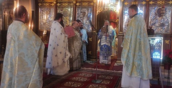 Συλλειτούργησαν ο Θεοφιλέστατος, οι Ιεροκήρυκες αρχιμ. Ιωάννης Καραμούζης-Αρχιγραμματέας της Ι. Συνόδου, Τιμόθεος Μπαϊμπάκης και Νεκτάριος Ευγενικός, οι Εφημέριοι του Ι. Ναού αρχιμ. Χρυσόστομος Καλύβας και πρωτοπρεσβ. Ηλίας Αγιαννίτης, ο οποίος κατόπιν εξετέλεσε καθήκοντα Τελετάρχου και οι διακ. Σταύρος Καλαφάτης και Ειρηναίος Σταμέλος.