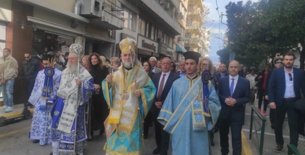 Μετά την έξοδο όλων από το πλωτό σκάφος, ο Σεβασμιώτατος παρέδωσε στη Δήμαρχο κ. Έλενα Βάκα δοχείο του Αγιασμού για το Υδραγωγείο της Πόλεως και στη συνέχεια η Λιτανευτική Πομπή επέστρεψε στον Ιερό Ναό του Αγίου Νικολάου, όπου και έγινε η Απόλυση. Κατά την διάρκεια της Λιτανείας, παρατηρήθηκε το φαινόμενο, που έχει γίνει παράδοση πλέον στον Τόπο μας, πολλά παιδάκια, αλλά και μεγαλύτεροι να τρέχουν προς τον Σεβασμιώτατο για να ασπαστούν τον Τίμιο Σταυρό.