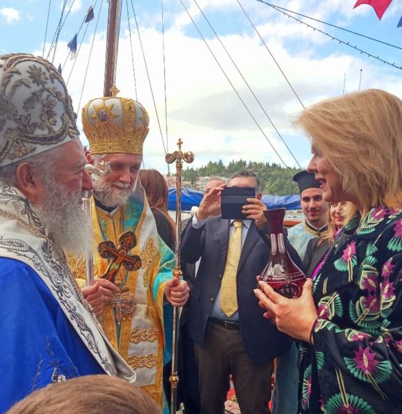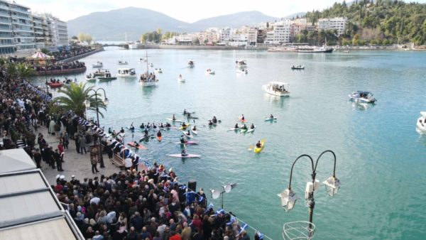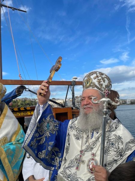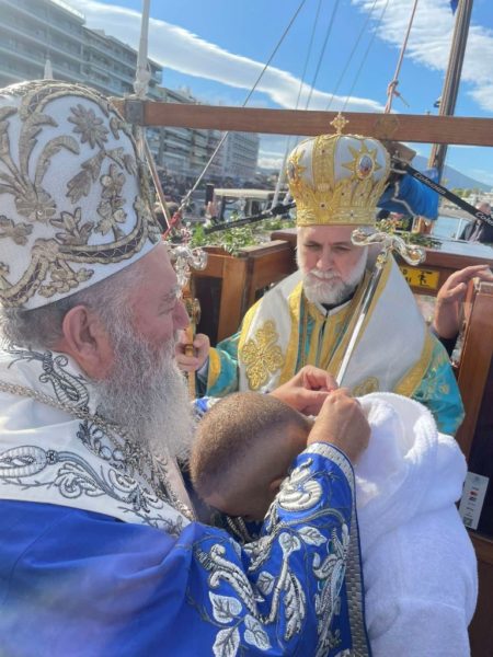 Εκεί ο Σεβασμιώτατος κ. Χρυσόστομος, ο Θεοφιλέστατος κ. Νικόδημος, ο Ιερός Κλήρος, οι επικεφαλής των αρχόντων του τόπου, επιβιβάστηκαν σε πλωτό σκάφος για την Τελετή της ρίψης του Τιμίου Σταυρού στη θάλασσα και τον Αγιασμό των υδάτων απέναντι από το ιστορικό κτίριο του Δημαρχείου της Πόλεως, ενώ όλη την παραλία της Χαλκίδος είχαν κατακλύσει εκατοντάδες των ευσεβών πιστών.