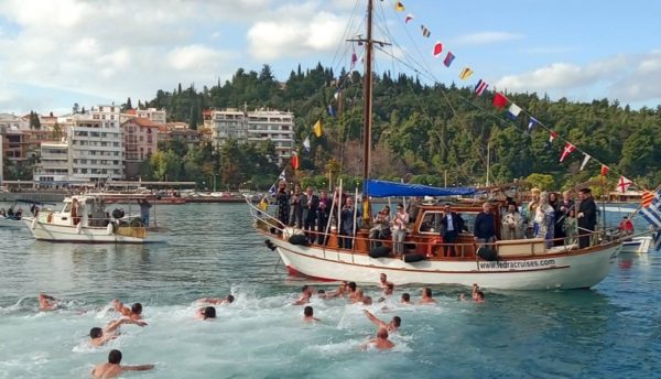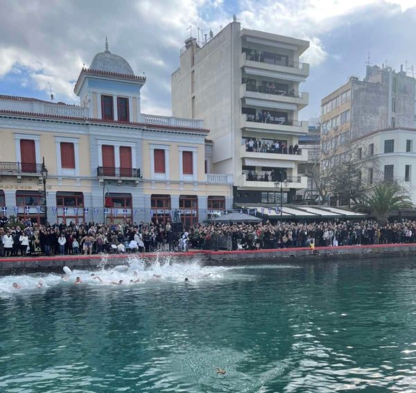 Μετά την ανάγνωση του Ευαγγελίου και την Δέηση που ανεπέμφθη, ο Σεβασμιώτατος έψαλλε το τροπάριο των Θεοφανείων «Εν Ιορδάνη βαπτιζομένου σου Κύριε…», είκοσι έξι κολυμβητές έπεσαν στη θάλασσα, το δε Σταυρό ανέσυρε ο κ. Κωνσταντίνος Γαρουφαλλιάς, ο οποίος παρέλαβε από τον Σεβασμιώτατο ένα χρυσό Σταυρό, ενώ οι υπόλοιποι κολυμβητές από ένα ασημένιο Σταυρό.