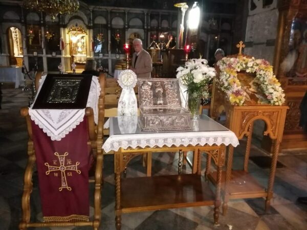 Μάλιστα κατά την διάρκεια της Αγρυπνίας, εκατοντάδες πιστοί προσήλθαν για να προσκυνήσουν το Ιερό Ένδυμα του Οσίου, το οποίο φυλάσσεται στο Ιερό Μητροπολιτικό Παρεκκλήσιο του Ευαγγελισμού της Θεοτόκου του Επισκοπείου και μετεφέρθη στον Ι. Ναό γι’ αυτό το λόγο.