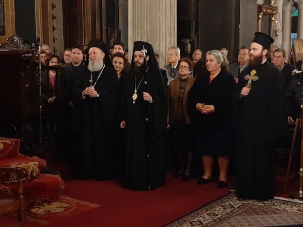 Στην ιερά ακολουθία, κατά την οποία έψαλλαν θαυμάσια Χοροί ιεροψαλτών, υπό την διεύθυνση των κ. Σπυρίδωνος Σιμιτζή και κ. Δήμου Τσίμπου, χοροστάτησε ως επίσημος προσκεκλημένος ο Σεβασμιώτατος Μητροπολίτης Σισανίου και Σιατίστης κ. Αθανάσιος, με την παρουσία και του Σεβασμιωτάτου Μητροπολίτου Χαλκίδος κ. Χρυσοστόμου.