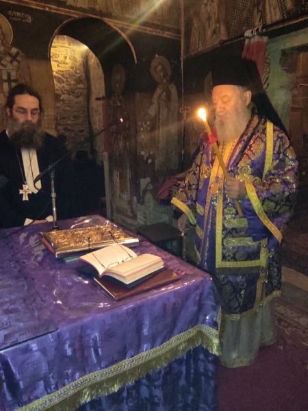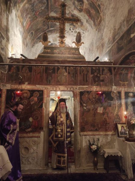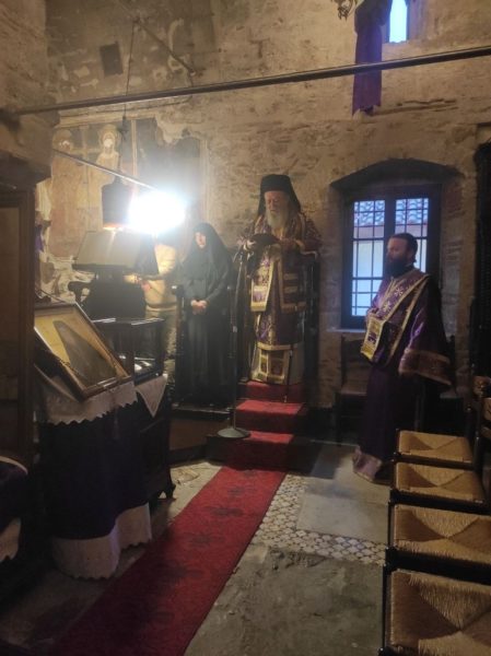 Το απόγευμα της Τετάρτης 9 Μαρτίου 2022, ο Σεβασμιώτατος κ. Χρυσόστομος μετέβη στην Ιερά Μονή Παναγίας Περιβλέπτου Πολιτικών, συνοδευόμενος από τον Αρχιμ. Αιμιλιανό Χρήστου-Προϊστάμενο του Μητροπολιτικού Ι. Ν. Αγ. Δημητρίου Χαλκίδος και τον Διάκ. Ευγένιο Τσάλλα, όπου και τέλεσε την Θεία Λειτουργία των Προηγιασμένων Δώρων, εκκλησιασθέντος και του Αρχιμ. Γαβριήλ Σέρβου.