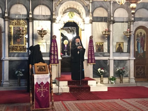 Το απόγευμα της Κυριακής, αφού επέστρεψε από την Β. Εύβοια, ο Σεβασμιώτατος κ. Χρυσόστομος χοροστάτησε στον Ε΄ κατανυκτικό Εσπερινό, στον Ιερό Ναό της Αγίας Παρασκευής Πολιούχου Χαλκίδος, κατά τη διάρκεια του οποίου ομιλήσει εμπνευσμένα ο Αρχιμ. Ιωάννης Καραμούζης-Ιεροκήρυκας της Ι. Μητροπόλεως και Γραμματεύς παρά τω Αρχιγραμματεί της Ι. Συνόδου της Εκκλησίας της Ελλάδος, με θέμα: «Η ανάβαση της Κλίμακας των αρετών από τους Μικρασιάτες Οσίους Αρσένιο τον Καππαδόκη και Παΐσιο τον Αγιορείτη», ενώ έψαλλαν θαυμάσια ο Καθηγητής της Σχολής Βυζαντινής Μουσικής της Ι. Μητροπόλεως κ. Στυλιανός Μπενής με μαθητές του και ο κ. Ελευθέριος Πνευματικός-Ιεροψάλτης και ιδιοκτήτης της Σχολής Παραδοσιακής Μουσικής «Γέφυρες».