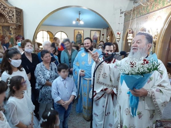Πριν την απόλυση της Θείας Λειτουργίας, ο Σεβασμιώτατος τέλεσε τον Αγιασμό της νέας Κατηχητικής Χρονιάς ενώ τα παιδιά του Κατηχητικού της Ενορίας δώρισαν μία ανθοδέσμη εις ένδειξη σεβασμού και αγάπης προς τον Ποιμενάρχη τους, ο οποίος και επαίνεσε τα παιδιά για την συμμετοχή τους στη Θεία Λειτουργία και στο Κατηχητικό της Ενορίας τους, το οποίο αποτελεί όφελος στην πορεία της ζωής τους.