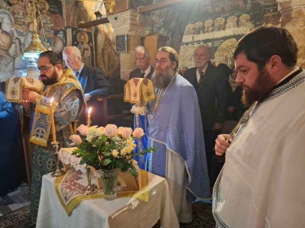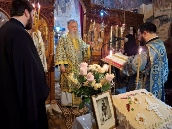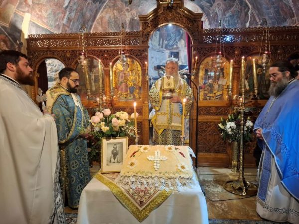 Μετά το πέρας της Θείας Λειτουργίας και την τέλεση του μνημοσύνου, ο Σεβασμιώτατος προσκύνησε στον τάφο του αειμνήστου Νικολάου, αλλά και των υπολοίπων αοιδίμων προκατόχων του, αφού εκεί ευρίσκεται, με απόφαση και ενέργειες του μακαριστού Νικολάου το Κοιμητήριο των Αρχιερέων της Ιεράς μας Μητροπόλεως και στη συνέχεια, η Αδελφότητα της Ι. Μονής προσέφερε το καθιερωμένο κέρασμα στο Αρχονταρίκι της Μονής για τον Σεβασμιώτατο και όλους τους ευλαβείς προσκυνητές, που προσήλθαν στην Θεία Λειτουργία.