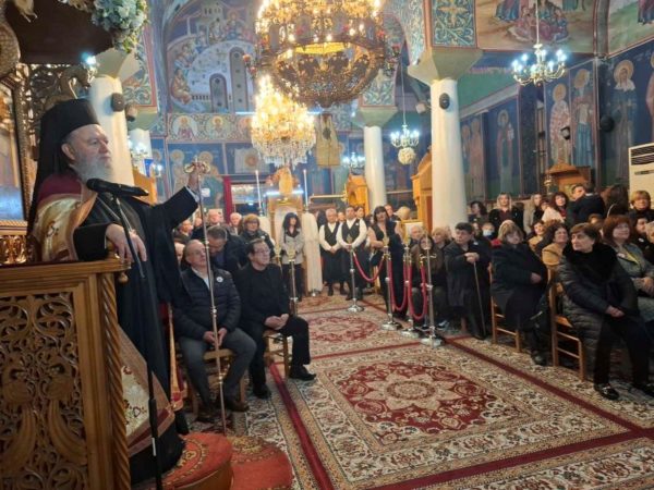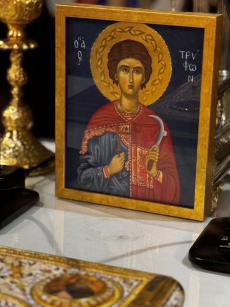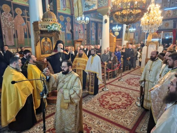 Ο Σεβασμιώτατος Μητροπολίτης κ. Χρυσόστομος, κηρύσσοντας τον θείο λόγο, επεσήμανε την έναρξη του κατανυκτικού Τριωδίου, κατά το οποίο και κυρίως στην αρχή του, οφείλουμε να αγωνισθούμε κατά του διαβόλου, που μας εκτρέπει του σκοπού μας με την πλάνη των διασκεδάσεων. Μάλιστα τόνισε ότι στον αγώνα αυτό παραστέκεται ως βοηθός και κυρίως ως παράδειγμά μας ο άγιος Τρύφων, ο οποίος στη ζωή του αγωνίσθηκε κατά της διαβολικής πλάνης της ειδωλολατρίας, μη φειδόμενος και τη θυσία της ζωής του υπέρ της αληθείας.