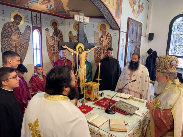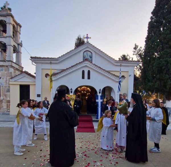 Το πρωί, ο Σεβασμιώτατος έτυχε συγκινητικής υποδοχής, που του επεφύλασσαν τα κορίτσια του Κατηχητικού Σχολείου της Ενορίας, ενώ μέσα στο πυκνό εκκλησίασμα ήταν έντονη η παρουσία των νέων που διακονούσαν στο ιερό βήμα ή αλλού.