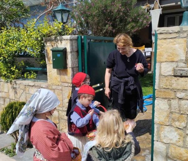 Πολλοί χριστιανοί προσήλθαν στο Κοιμητήριο και συμμετείχαν στα Άχραντα Μυστήρια, εκδηλώνοντας και με αυτό τον τρόπο την πίστη μας στην κοινή εκ νεκρών Ανάσταση, ενώ τα «Λαζαράκια» της Ενορίας των Αγ. Απ. Πέτρου και Παύλου ενώθηκαν με τα μικρότερα παιδιά του Κατηχητικού και μαζί με τις Κατηχήτριές τους κ. Μαρία Μπελεγράτη και Ειρήνη Μαντά, σχηματίζοντας εβδομηνταμελή χορωδία, ηλικιών από 3,5 έως 13 ετών, που πλημύρισε τις γειτονιές της Ενορίας με παραδοσιακά κάλαντα και χαρούμενες, γιορτινές, παιδικές φωνές.