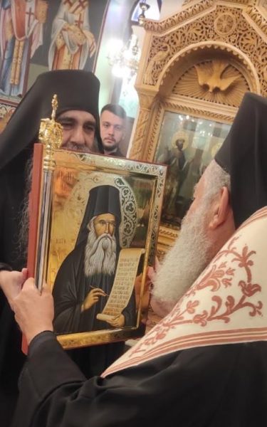 Ακολούθως, μετά την σύντομη δέηση επί τη υποδοχή της ιεράς εικόνος και την είσοδο στον περικαλλή Ι. Ναό της Κοιμήσεως της Θεοτόκου κατά την κρατούσα τάξη της Εκκλησίας μας ο Σεβασμιώτατος κ. Χρυσόστομος καθιέρωσε την εικόνα του Οσίου Δανιήλ παραδίδοντάς την εις προσκύνηση των πιστών και μόνιμη φύλαξη στην Ενορία της Κοιμήσεως της Θεοτόκου.