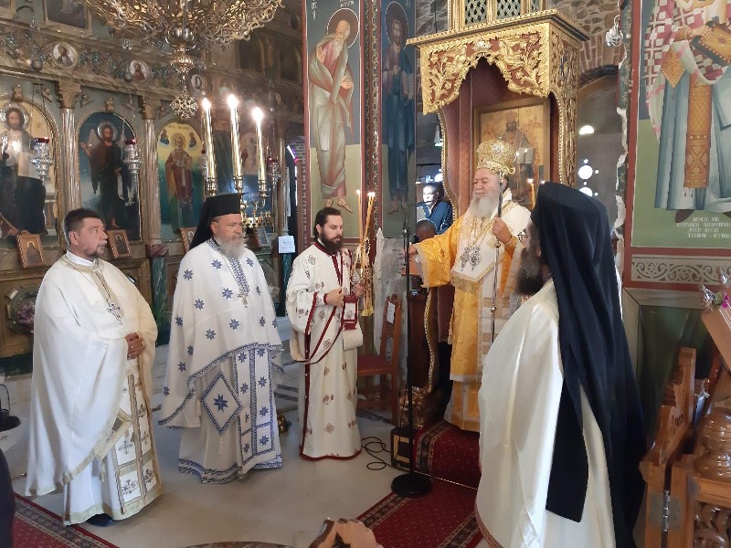 Ο Σεβασμιώτατος Μητροπολίτης Χαλκίδος κ. Χρυσόστομος χοροστάτησε κατά τον Όρθρο, προεξήρχε στη Θεία Λειτουργία και κήρυξε τον θείο λόγο στον Ι. Ναό Κοιμήσεως της Θεοτόκου Βασιλικού.