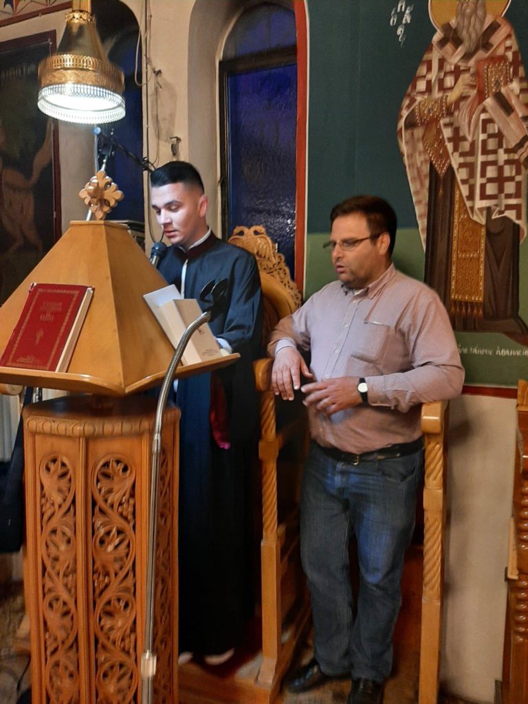 Επίσης το αναλόγιο διηκόνησε ο Ιεροψάλτης του ιερού ναού κ. Ευάγγελος Μεγάκης με την συμμετοχή και άλλων ιεροψαλτών.