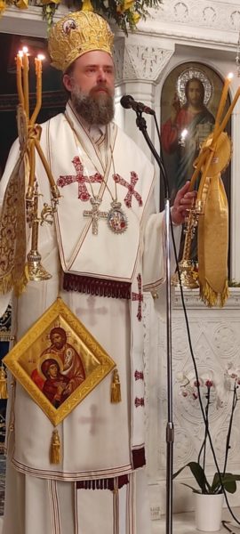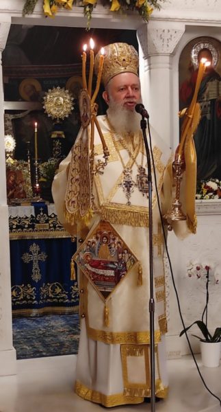 Το πρωί της κυριωνύμου ημέρας, ο Σεβασμιώτατος κ. Χρυσόστομος και ο περί αυτόν ιερός Κλήρος, με επικεφαλής τον Πρωτοσύγκελλο της Ιεράς Μητροπόλεως Αρχιμ. Νικόδημο Ευσταθίου, υποδέχθηκαν τον Θεοφιλέστατο Επίσκοπο Ωρεών κ. Φιλόθεο-Αρχιγραμματέα της Ιεράς Συνόδου της Εκκλησίας της Ελλάδος, ο οποίος χοροστάτησε στον Όρθρο και προεξήρχε στη Θεία Λειτουργία, ενώ τον ιερό άμβωνα διηκόνησε ο Ιεροκήρυκας Αρχιμ. Νεκτάριος Ευγενικός.