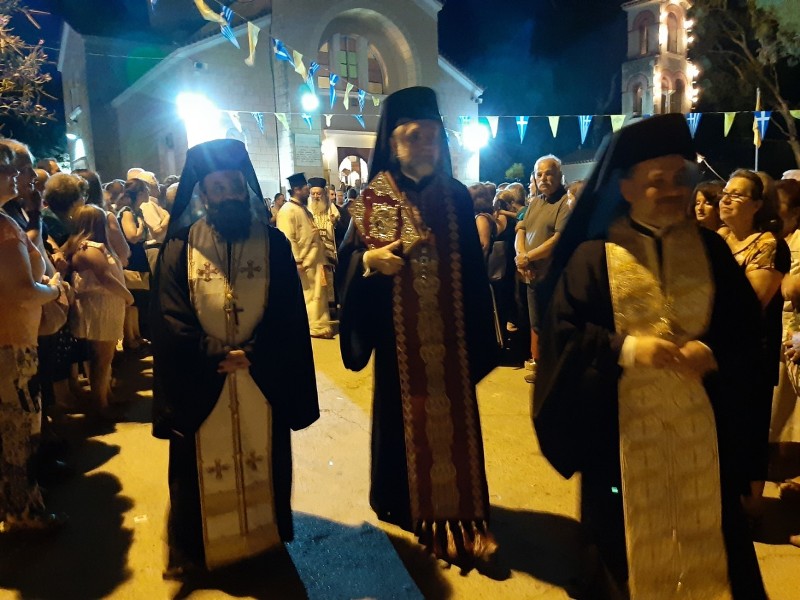Λίγο πριν την Απόλυση ο Σεβασμιώτατος ευλόγησε τα κόλλυβα της Παναγίας και κήρυξε τον θείο λόγο αναφερθείς στην μεγάλη εορτή Της.