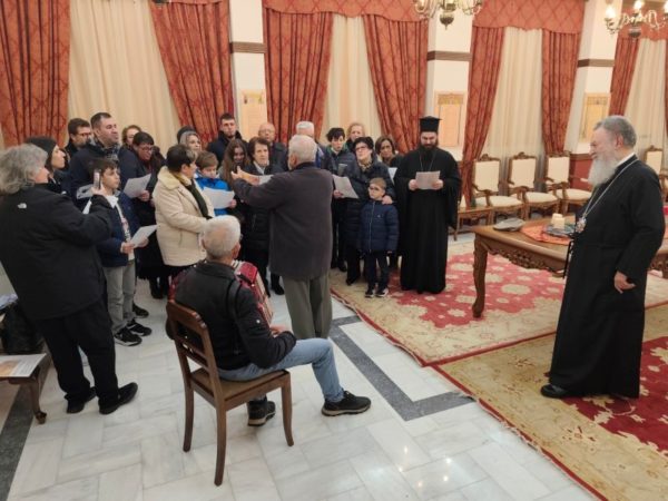 Επίσης, λίγο πριν τα μεσάνυχτα της 24ης Δεκεμβρίου, παραδοσιακή χορωδία καλάντων, έψαλε συγκινητικές παραδοσιακές μελωδίες της Πατρίδος μας στον Σεβασμιώτατο.