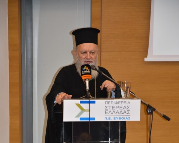 Την εκδήλωση έκλεισε ο Σεβασμιώτατος Μητροπολίτης Χαλκίδος κ. Χρυσόστομος, ο οποίος, εμφανώς συγκινημένος, ευχαρίστησε τον Πανιερώτατο κ. Αγαθάγγελο για το σπουδαίο θέμα της εξαιρετικής εκδηλώσεως, τις θεόπνευστες ιδέες του, που τον οδηγούν σε βαθειά έρευνα του αντικειμένου που μελετά κάθε φορά. Επίσης ευχαρίστησε τον Αντιπεριφερειάρχη Ευβοίας κ. Γεώργιο Κελαϊδίτη για την ευγενική παραχώρηση της αίθουσας, όσους κοπίασαν για την πραγματοποίηση της εκδηλώσεως τον Tηλεοπτικό Σταθμό «STAR Κεντρικής Ελλάδος», την διαδικτυακή πλατφόρμα της Αποστολικής Διακονίας και τον Ραδιοφωνικό Σταθμό της Ιεράς Μητροπόλεως για την απευθείας μετάδοση της εκδηλώσεως, ξεπερνώντας τα εμπόδια της εποχής μας.