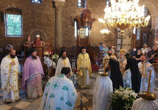 Το Σάββατο 22 Αυγούστου 2020 ο Σεβασμιώτατος Μητροπολίτης Χαλκίδος κ. Χρυσόστομος χοροστάτησε κατά την Ακολουθία του Όρθρου και προεξήρχε της Θείας Λειτουργίας, η οποία ετελέσθη στον Ι. Ναό Αγίας Παρασκευής Πολιούχου Χαλκίδος, με την συμμετοχή ενδεκάδος Ιερέων, με επικεφαλής τον Πρωτοσύγκελλο της Ιεράς Μητροπόλεως Αρχιμ. Νικόδημο Ευσταθίου, αλλά και πολλών ευσεβών χριστιανών.