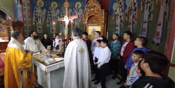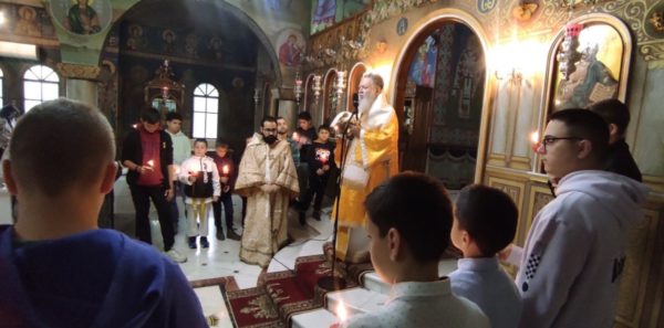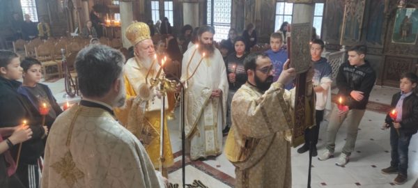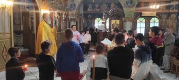 Επίσης, λίγο πριν το τέλος του κηρύγματός του, ο Σεβασμιώτατος κ. Χρυσόστομος επαίνεσε τον π. Ιωάννη για το έργο της κατηχήσεως και διακονίας των νέων που επιτελεί στην Ενορία και εξέφρασε τη χαρά του, διότι πολλά παιδιά καθ’όλη τη διάρκεια της Θείας Λειτουργίας διηκόνησαν στο Ιερό Βήμα, απήγγειλαν το Σύμβολο της Πίστεως και το «Πάτερ ημών» και μετάλαβαν των Αχράντων Μυστηρίων.
