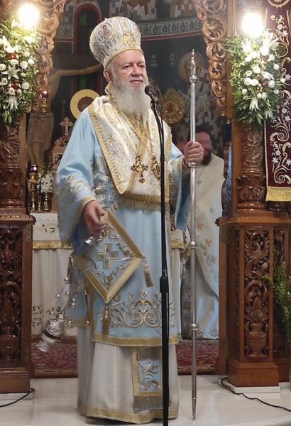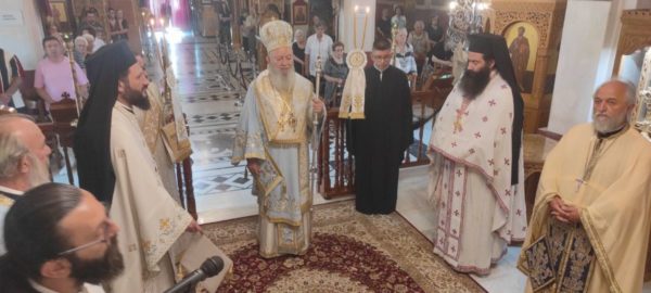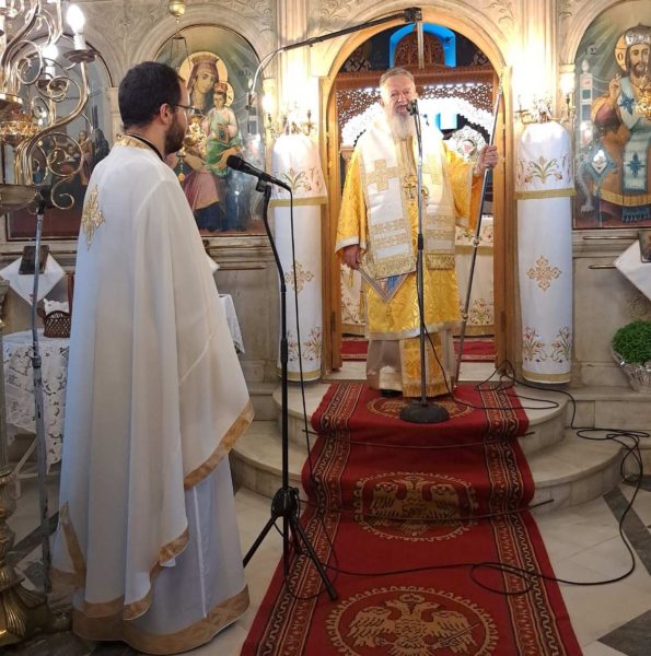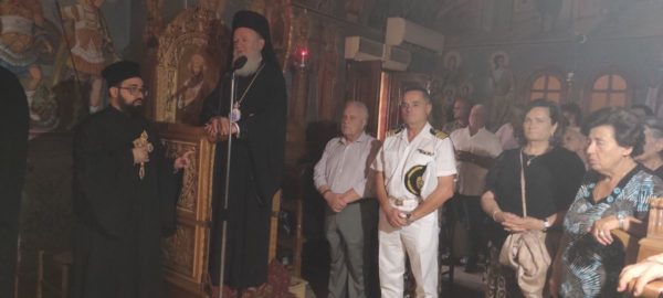 Λίγο πριν την απόλυση της Θείας Λειτουργίας, ο Σεβασμιώτατος κήρυξε τον θείο λόγο, αναφέροντας ότι ο άγιος Παντελεήμων είναι πρότυπο για κάθε χριστιανό, αφού πέτυχε την περίοδο της στρατείας του, να είναι κατά πάντα συνεπής με τον στρατολογήσαντα, δηλαδή ως στρατιώτης του Χριστού, όπως γίνεται κάθε χριστιανός μετά το βάπτισμά του, έγινε εργάτης των εντολών Του σε άριστο βαθμό.