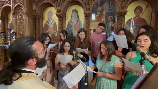 Κατά τη διανομή του αντιδώρου, παιδιά του μέσου και ανωτέρου Κατηχητικού της Ενορίας Αγ. Παντελεήμονος Λ. Αιδηψού, με την καθοδήγηση του υπευθύνου νεότητας της Ενορίας και της Αρχιερατικής Περιφερείας Αιδηψίων π. Χρήστου Νγκέλα, έψαλλαν την ιερά παράκληση προς τον Άγιο Παντελεήμονα.