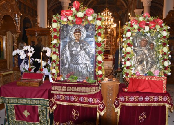 Αμέσως μετά, κήρυξε τον θείο λόγο ο Σεβασμιώτατος Μητροπολίτης Θεσσαλονίκης κ. Φιλόθεος αναφέροντας ότι οι Άγιοι μας βοηθούν να οικειωθούμε με τον Θεό. Εμείς καλούμαστε να παραμείνουμε, σαν τους Αγίους, σταθεροί και πιστοί στην αγάπη του Θεού και η Εκκλησία μας υποστηρίζει σε αυτό. Ο Άγιος Δημήτριος ονομάζεται και είναι υπέρμαχος όλης της οικουμένης και υπερμαχεί κατά του εγωϊσμού και της έπαρσης, από την οποία, όποιος πάσχει δεν αντιλαμβάνεται τα όρια του και έχει εντός του την ρίζα όλων των αμαρτιών. Και ενώ, ως υπέρμαχος, ο Άγιος Δημήτριος αναδεικνύεται πάντοτε νικητής, με την φυλάκισή του, τους βασανισμούς και το υπέρ Χριστού μαρτύριό του μας προμηθεύει με τα όπλα της υπομονής και της προσευχής και μας υπομιμνήσκει ότι αεί τη θυσία έπεται η νίκη και τω Σταυρώ ακολουθεί η Ανάστασις.