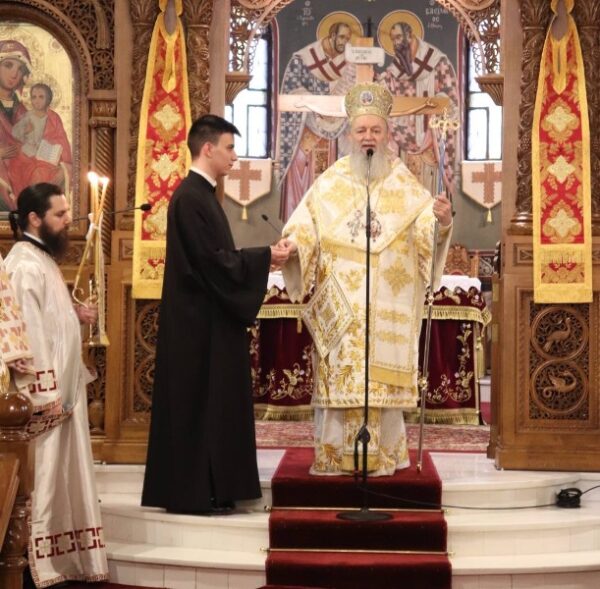 Κατά τη διάρκεια της Θείας Λειτουργίας, ο Σεβασμιώτατος χειροθέτησε Αναγνώστη τον Ιεροσπουδαστή κ. Ειρηναίο-Μάριο Σταμέλο και με την ευκαιρία της χειροθεσίας απηύθυνε λόγο παραινετικό στον νέο Αναγνώστη και σε όλο το εκκλησίασμα σχετικά την ανάγκη καλλιεργείας και καταρτισμού μας, μέσα από την μελέτη των Αγίων Γραφών, των πατερικών λόγων και συγγραμμάτων και την διαφύλαξη της ελληνικής γλώσσας.