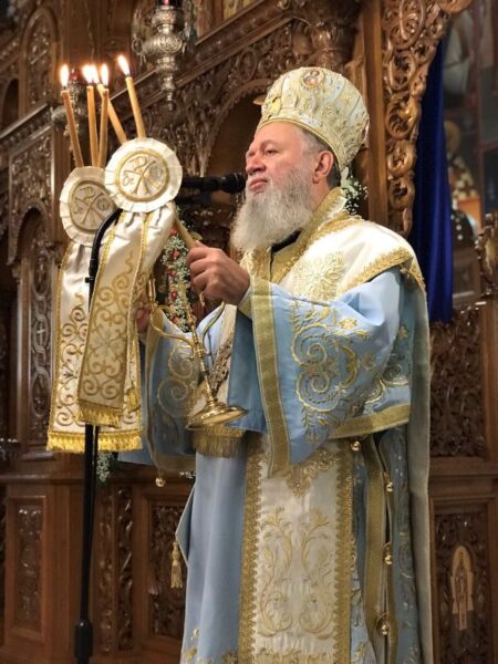 Το Σάββατο 27 Ιουλίου το πρωί, χοροστάτησε στον Όρθρο, προεξήρχε στη Θεία Λειτουργία και κήρυξε τον θείο λόγο στον πανηγυρίζοντα Ιερό Ναό Αγίου Παντελεήμονος Λουτρών Αιδηψού, συλλειτουργούντων πολλών Ιερέων και με τη συμμετοχή πολυπληθούς εκκλησιάσματος, το οποίο αποτελείτο τόσο από κατοίκους της Αιδηψού όσο και από παρεπιδημούντες προσκυνητές, οι οποίοι προέρχονται από διάφορες περιοχές της Πατρίδος μας, επισκέπτονται την Αιδηψό για τα ιαματικά της λουτρά, δίχως ποτέ να παραλείπουν να εκκλησιάζονται.