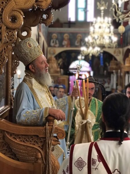 Το Σάββατο 27 Ιουλίου το πρωί, χοροστάτησε στον Όρθρο, προεξήρχε στη Θεία Λειτουργία και κήρυξε τον θείο λόγο στον πανηγυρίζοντα Ιερό Ναό Αγίου Παντελεήμονος Λουτρών Αιδηψού, συλλειτουργούντων πολλών Ιερέων και με τη συμμετοχή πολυπληθούς εκκλησιάσματος, το οποίο αποτελείτο τόσο από κατοίκους της Αιδηψού όσο και από παρεπιδημούντες προσκυνητές, οι οποίοι προέρχονται από διάφορες περιοχές της Πατρίδος μας, επισκέπτονται την Αιδηψό για τα ιαματικά της λουτρά, δίχως ποτέ να παραλείπουν να εκκλησιάζονται.