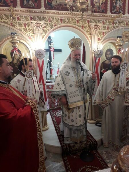 Ο Σεβασμιώτατος χοροστάτησε κατά την Ακολουθία του Όρθρου, ενώ προεξήρχε και στην Θεία Λειτουργία, συλλειτουργούντων των Ιεροκήρυκος Αρχιμ. Νεκταρίου Ευγενικού, ο οποίος κήρυξε τον θείο λόγο, Πρωτοπρεσβ. Ηλία Αγιαννίτη, Προϊσταμένου του Ι. Ναού Αγίου Νικολάου Χαλκίδος, Πρωτοπρεσβ. Σταματίου Μπασδέκη, Προϊσταμένου του Ι. Ναού Κοιμήσεως της Θεοτόκου Βασιλικού, του Εφημερίου της Ενορίας Πρεσβ. Δημητρίου Παλληκαρίου και των Διακ. Νικολάου Πριμηκυρίου και Ευγενίου Τσάλλα.