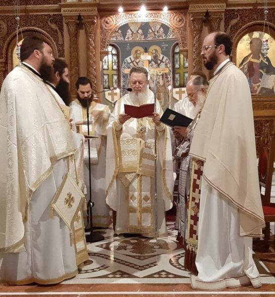 Στην Ιερά Αγρυπνία, η οποία μεταδόθηκε σε απευθείας σύνδεση από τον Ραδιοφωνικό Σταθμό της Ι. Μητροπόλεως Χαλκίδος, προεξήρχε ο Σεβασμιώτατος Μητροπολίτης Χαλκίδος κ. Χρυσόστομος, συλλειτουργούντων και άλλων Κληρικών της Τοπικής μας Εκκλησίας και πολλών ευσεβών χριστιανών, ενώ το ιερό Αναλόγιο διηκόνησε εξαιρετικά Χορός Ιεροψαλτών του Ενοριακού Ι. Ν. Ευαγγελιστού Λουκά (Πατησίων), υπό την διεύθυνση του κ. Κυριάκου Στάντζου, Καθηγητού της Σχολής Βυζαντινής Μουσικής της Ι. Μητροπόλεως, με την συμμετοχή και άλλων μαθητών του.
