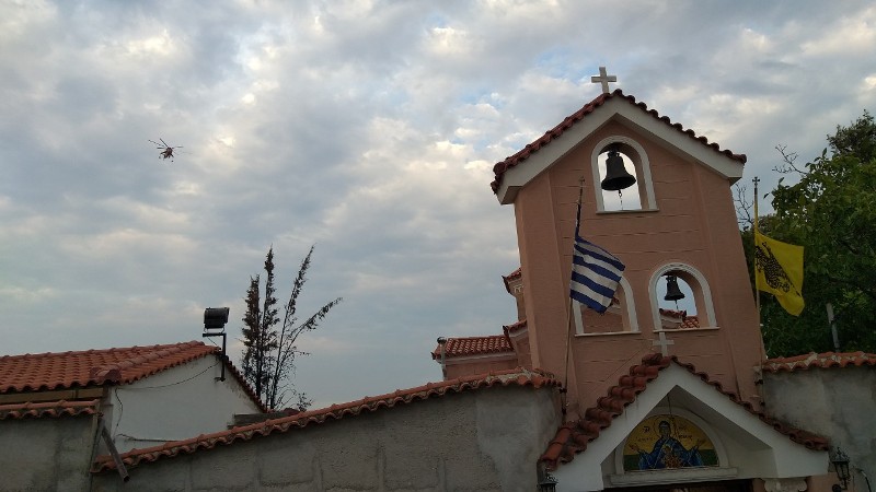 Μάλιστα, κατά την λιτάνευση του Επιταφίου της Παναγίας εντός του περιβόλου της Ι. Μονής, έφθασε και η καλή είδηση ότι η πυρκαϊά, μετά από τρεις μέρες ολέθριας επελάσεως, είναι πλέον οριοθετημένη και χωρίς ενεργό μέτωπο και κατά την Απόλυση, ο Σεβασμιώτατος ευχήθηκε σε όλους να γίνουν ζηλωτές των αρετών και της θέσεως της Παναγίας στον ουρανό και να εκμεταλλεύονται την χρήση της ελευθερίας τους προς αγιασμό και σωτηρία.
