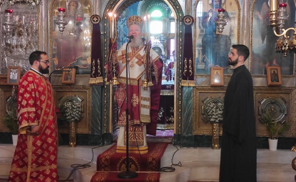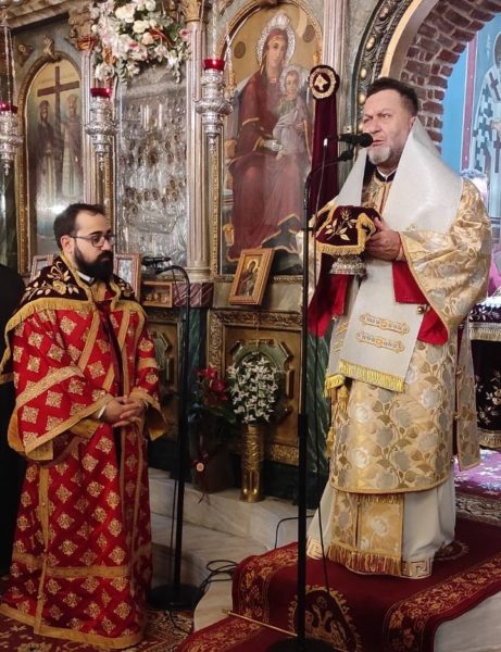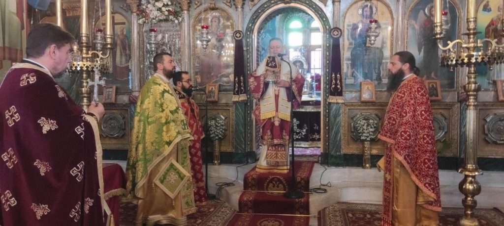 Ο Μητροπολίτης Πτολεμαΐδος κ. Εμμανουήλ χοροστάτησε στον Όρθρο και προεξήρχε και στο Αρχιερατικό Συλλείτουργο, με την συμμετοχή του Μητροπολίτη Χαλκίδος κ. Χρυσοστόμου και των αρχιμ. Θεοφυλάκτου Τσαγκάρη-προϊσταμένου της Ενορίας Ευαγγελισμού της Θεοτόκου Κανήθου Χαλκίδος, Χριστοφόρου Παπαθανασίου-εφημερίου της Ι. Μονής Αγ. Γεωργίου «ΑΡΜΑ», του πρωτοπρεσβ. Σταματίου Μπασδέκη-εφημερίου του Ι. Ν. Κοιμ. Θεοτόκου Βασιλικού, του διακ. Σταύρου Καλαφάτη, των αγίων ιεροψαλτών του Ι. Ναού κ. Αθανασίου Τριανταφύλλου, και κ. Αλεξάνδρου Βουρή και πολλών ευσεβών χριστιανών.