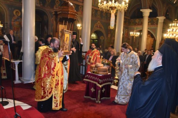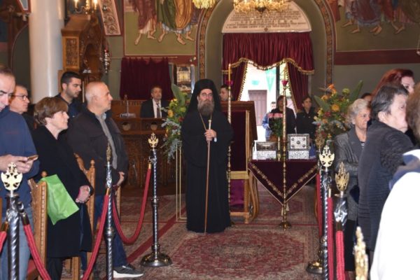 Κατά την κυριώνυμη ημέρα, χοροστάτησε στον Όρθρο και προέστη στο Αρχιερατικό Συλλείτουργο ο Σεβασμιώτατος Μητροπολίτης Πειραιώς κ. Σεραφείμ, ενώ τον πανηγυρικό της ημέρας εκφώνησε ο, επίσης, εορτάζων αρχιμ. Χρυσόστομος Καλύβας-Ιεροκήρυκας και Γραμματεύς της Ι. Μητροπόλεως Χαλκίδος.