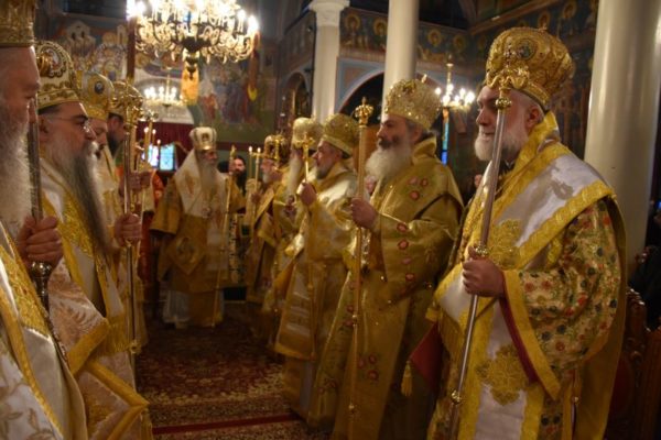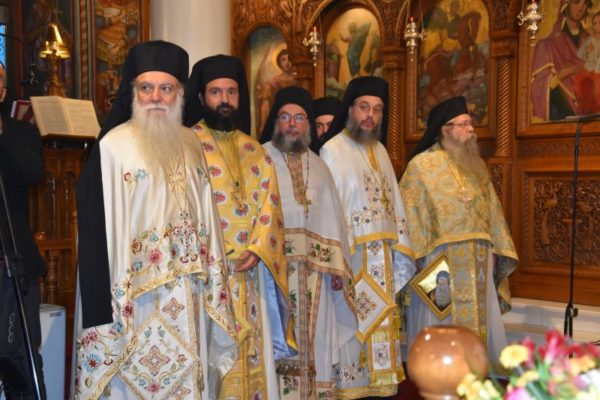 Στις ιερές ακολουθίες του διημέρου, 12 και 13 Νοεμβρίου 2024, συμμετείχαν οι Σεβασμιώτατοι Μητροπολίτες Καρυστίας και Σκύρου κ. Σεραφείμ, Πειραιώς και Φαλήρου κ. Σεραφείμ, Σύρου κ. Δωρόθεος, Ειρηνουπόλεως κ. Νίκανδρος, Θηβών, Λεβαδείας και Αυλίδος κ. Γεώργιος, Γλυφάδας κ. Αντώνιος, Φθιώτιδος κ. Συμεών, Θεσσαλονίκης κ. Φιλόθεος, Γόρτυνος και Μεγαλοπόλεως κ. Νικηφόρος, ο Πανιερώτατος Μητροπολίτης Φαναρίου κ. Αγαθάγγελος, οι Θεοφιλέστατοι Επίσκοποι Ρωγών κ. Φιλόθεος, Σκοπέλου κ. Νικόδημος, Σταυροπηγίου κ. Αλέξιος, Αχελώου κ. Νήφων, Αλμωπίας κ. Στέφανος και ο εορτάζων Σεβασμιώτατος Μητροπολίτης Χαλκίδος κ. Χρυσόστομος.